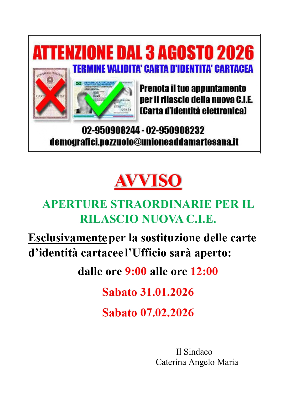 RILASCIO C.I.E. – Aperture straordinarie