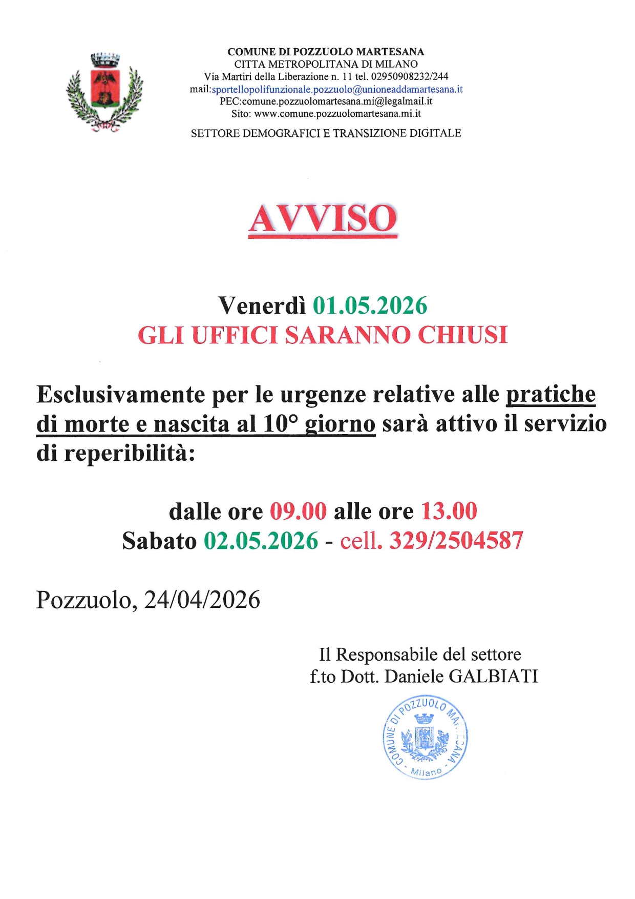 Convocazione del CONSIGLIO COMUNALE, 29 Aprile 2026 alle ore 21.00